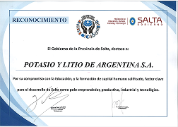 薩爾塔省政府表彰證書(shū)
