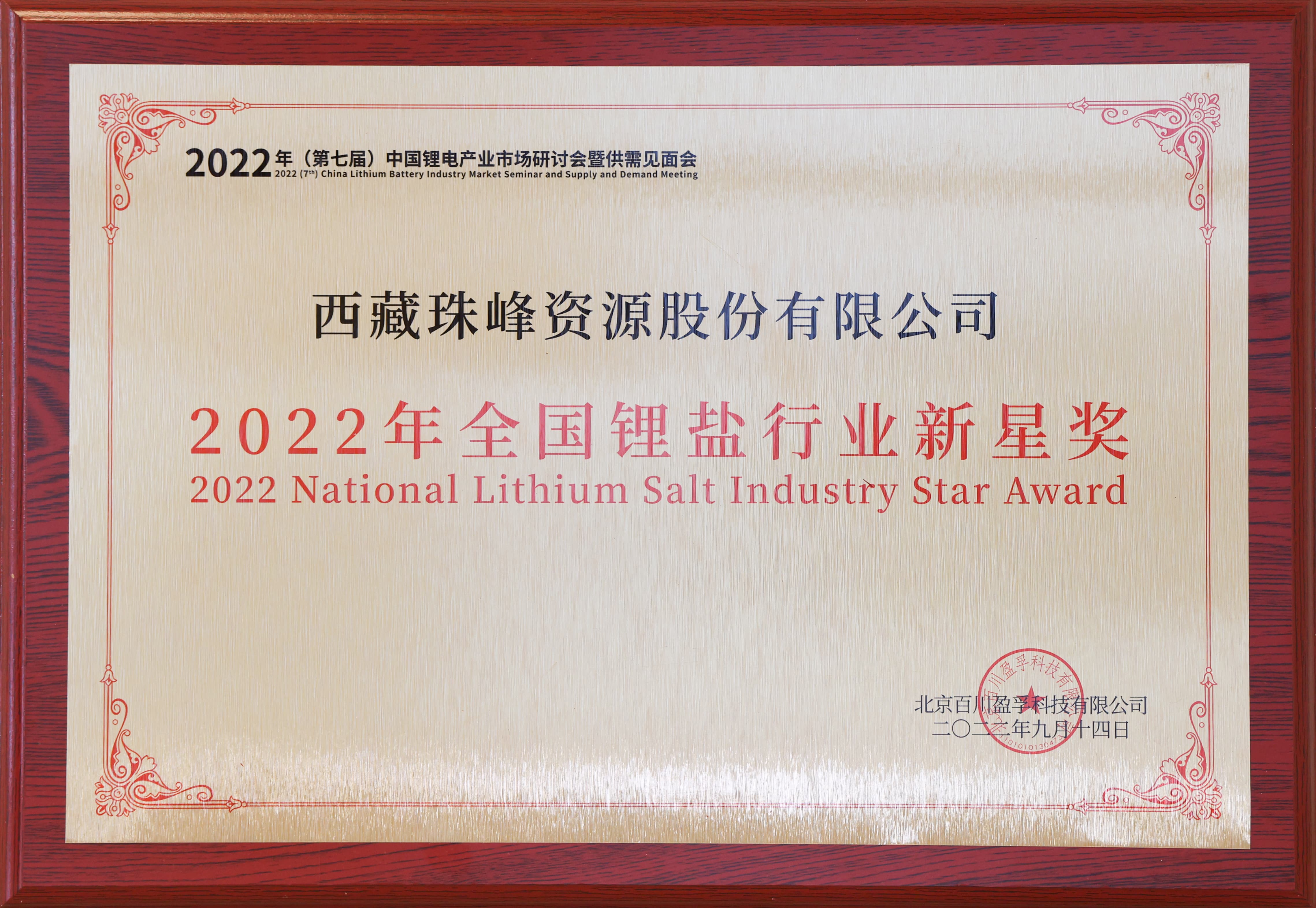 全國(guó)鋰鹽行業(yè)新星獎(jiǎng)